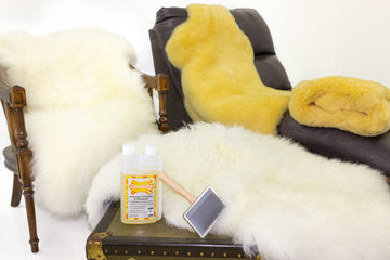 CleanSheep brand Sheepskin Shampoo recommended. See full instructions on the package